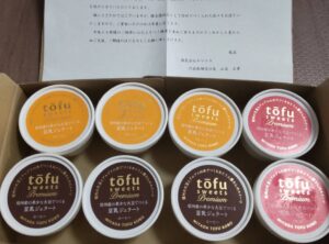 今年の第一弾はとうふアイスを頂きました。豆腐は無理にアイスにしなくてもいいかなと思いました。第二弾は昨年も頼んで好評だった豆腐焼きどーなつにしました。